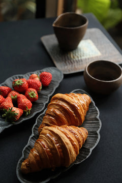 This wooden plate is fully hand-carved in the shape of a croissant. The texture reduce the contact surface and is easy to clean, so you can use it every day without worry. It works well for bread, fruit, or a small dessert with coffee. Simple but warm, it brings a little joy to your daily table.