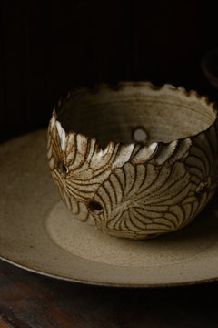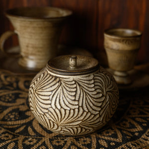 I am Ye Yu, born in a mountain village of Guizhou. Since childhood I shaped figures from the red clay of my hometown, its warmth pressed deep into memory. While others advised me toward science for stability, I carried clay in my schoolbag instead—sketching patterns between classes, chasing village craftsmen for their secrets during holidays. Later, formal study in ceramics led me to masters across the country, until I encountered the thousand-year-old Cizhou sgraffito tradition. There I found my true way of speaking with clay. After graduation I returned home and founded NANYI. In the old family house the kiln burns steadily, and local artisans often gather to share skills—old knowledge weaving with new technique in every piece. “Nan” is my native soil; “Yi” is the spark within the kiln. I hope that when you touch my ceramics, you also feel this steady devotion.