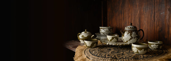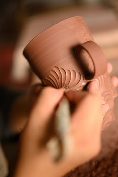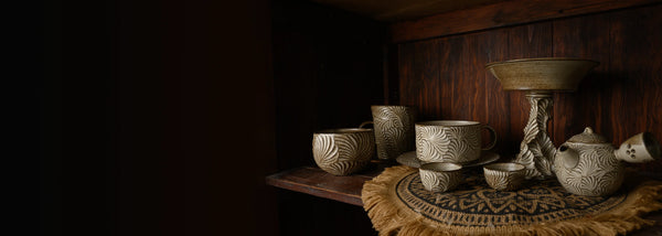 An exclusive legacy of clay blends and firing methods, giving each piece a rustic, mysterious texture.
