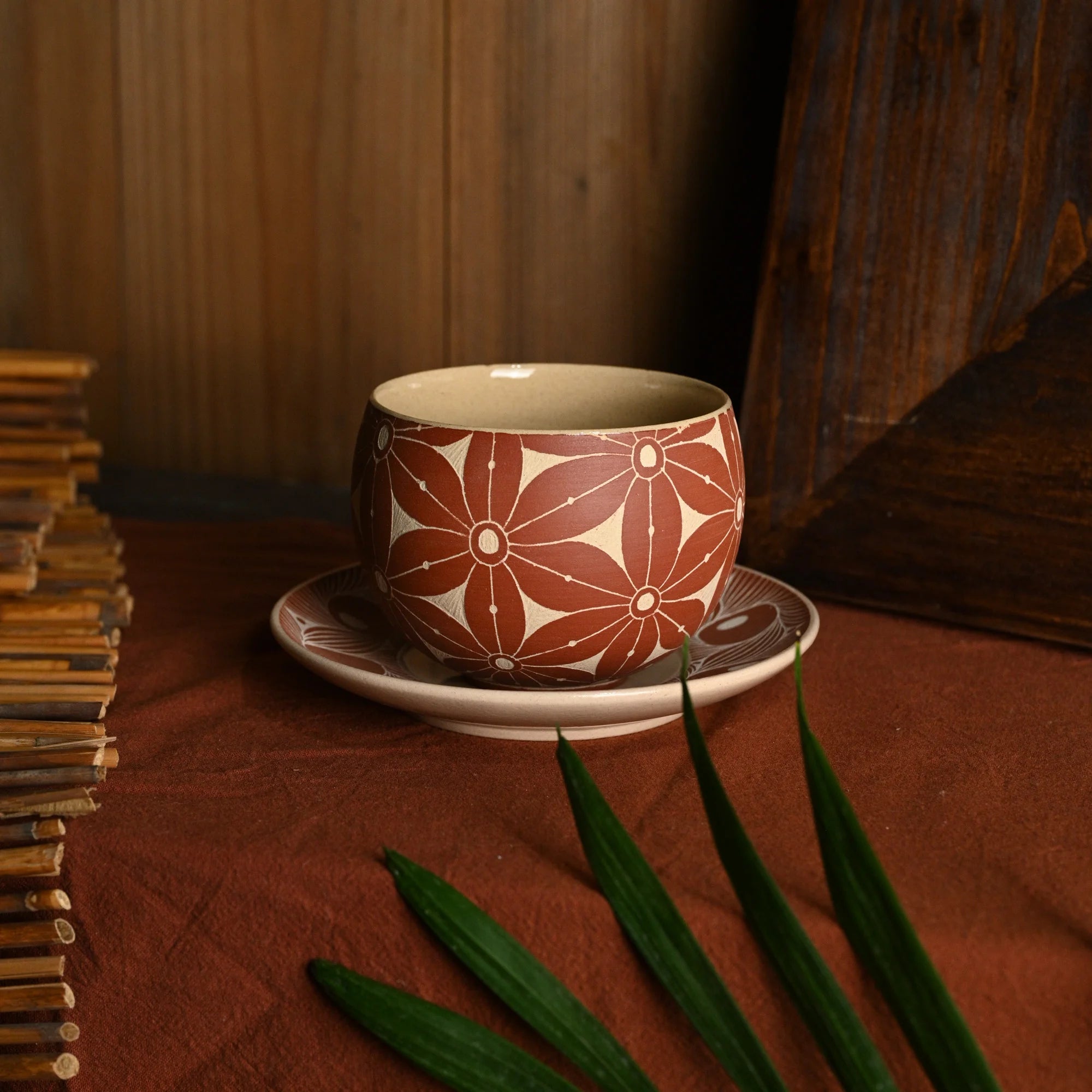 The Earthen Floral series reflects the warmth and earthy tones of the Jingdezhen traditional clay, bringing ancient motifs to life with a contemporary twist. The gentle rhythm of the hand-carved patterns on each piece, coupled with the rich, terracotta-like hues, create a sense of familiarity and timelessness. The textures and colors embrace the natural imperfections of handcraft, making each piece uniquely beautiful and full of character.